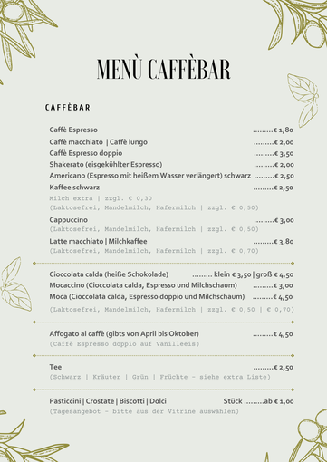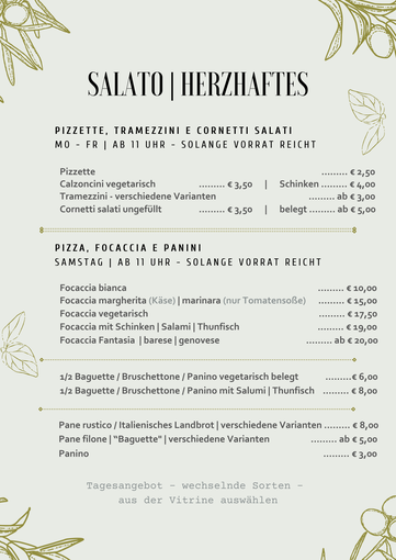 Piccola Italia Speisekarte